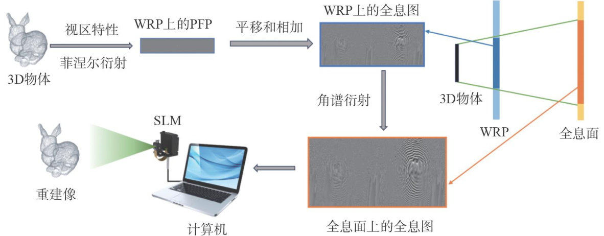 Abstract: Holographic 3D display, capable of recording and reconstructing both the amplitude and phase information of objects, is regarded as one of the most promising 3D display technologies. To address the challnges of high computational complexity and limited performance in real-time applications in current hologram generation process, a fast hologram generation method based on effective viewing zone analysis was proposed. By constructing a geometric model of the effective viewing zone, the method quantitatively identified the effective regions of the hologram that contribute to the reconstructed image, enabling the reduction of redundant areas during calculation process and thus improving calculation eficiency. Furthermore, a virtual wavefront recording plane was introduced and combined with the novel look-up table method to optimize the diffraction propagation. Experimental results show that, compared to the novel look-up table method, the proposed method reduces the hologram generation time by more than 49% . Moreover, the computational acceleration becomes more significant as the object resolution increases. In addition, this effective viewing zone analysis method also exhibits strong generalizability and can be extended to al point-based algorithms, providing a new solution for efficient hologram generation.