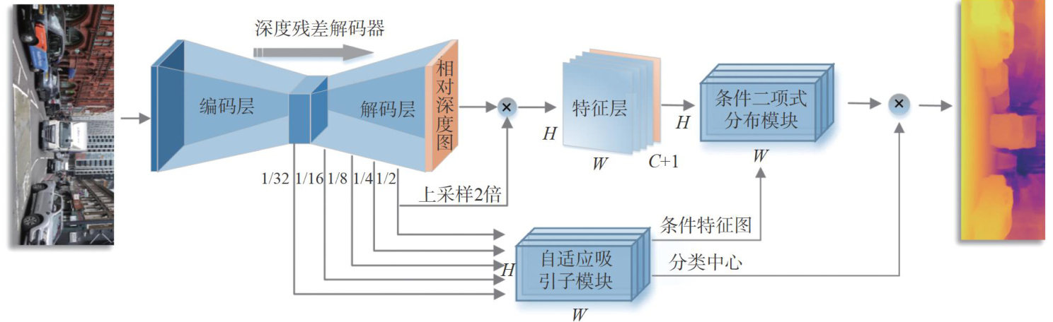 Keywords: depth estimation; multi-scale feature fusion; feature enhancement; lightweight network; classification strategy