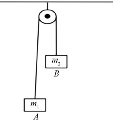 例1如图1所示,质量分别为 m1 和 m2 的物体 A 和 B 通过轻绳跨过光滑定滑轮连接,其中 m1>m2 .不计绳与滑轮间的摩擦,求系统的加速度大小及绳中张力.