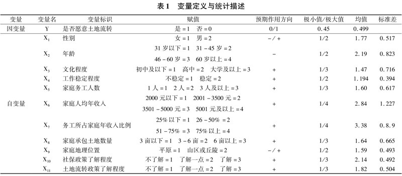 关键词:陕南农业人口;就近转移;意愿;Logistic模型