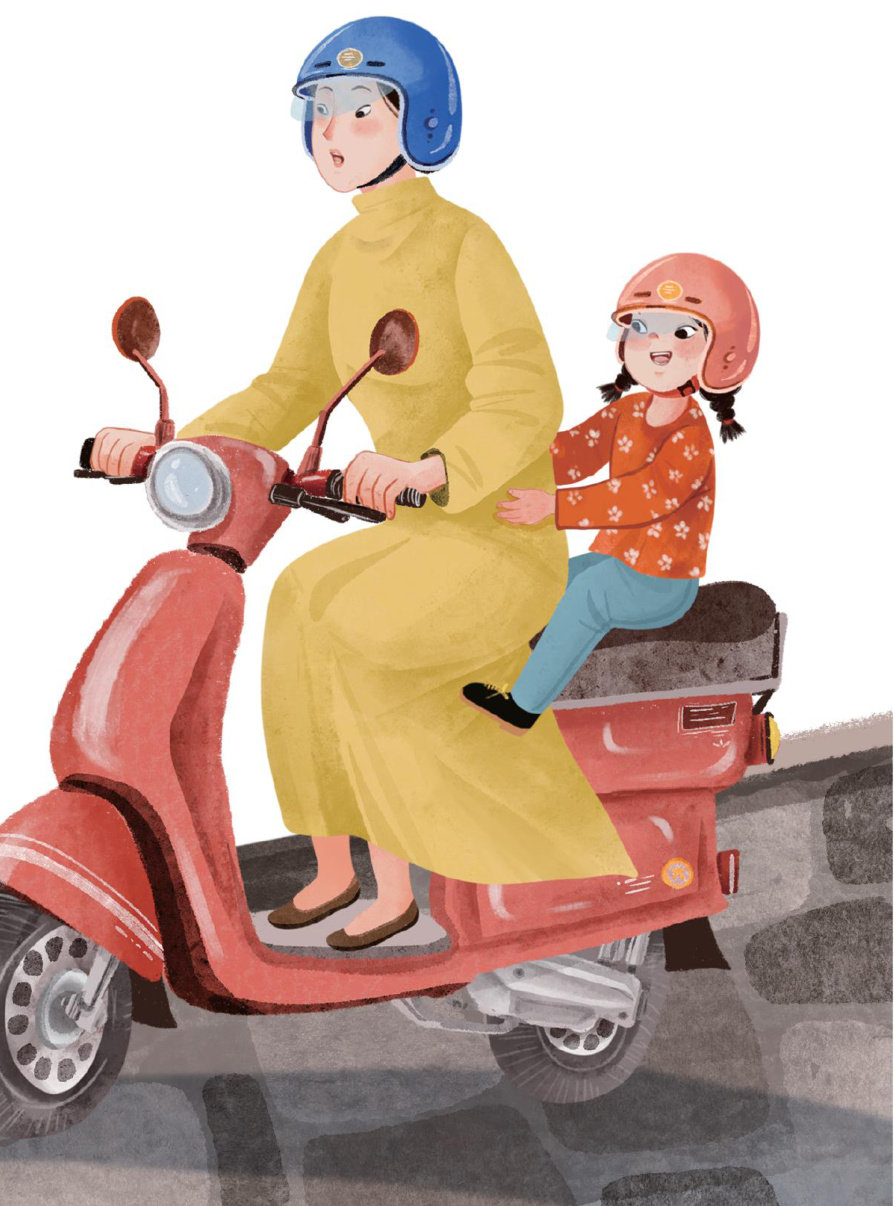 妈妈的电瓶车突然停了下来。
