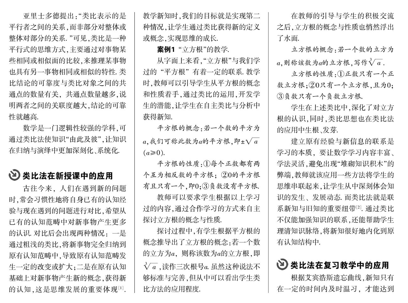 类比法在数学教学中的应用研究