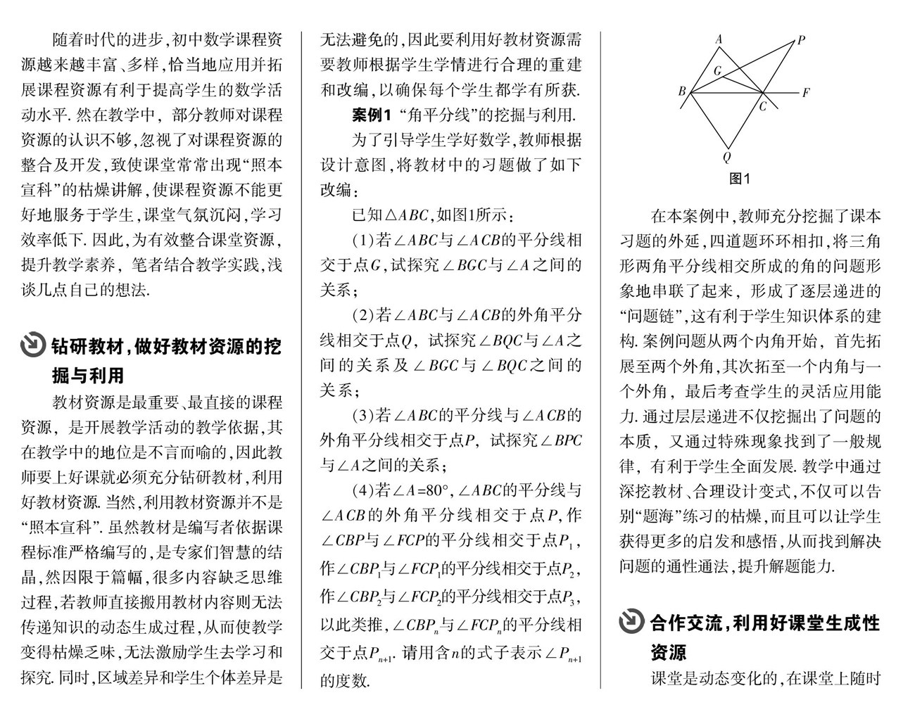 [摘 要] 要使“教”与“学”和谐发展,教学中需要应用好各种课程资源,以此来提升教学水平和学习水平. 文章认为,教学中要重视教材资源、课堂生成性资源等课程资源的开发与利用,从而丰富课堂内容,开阔视野,提高学生的数学素养.