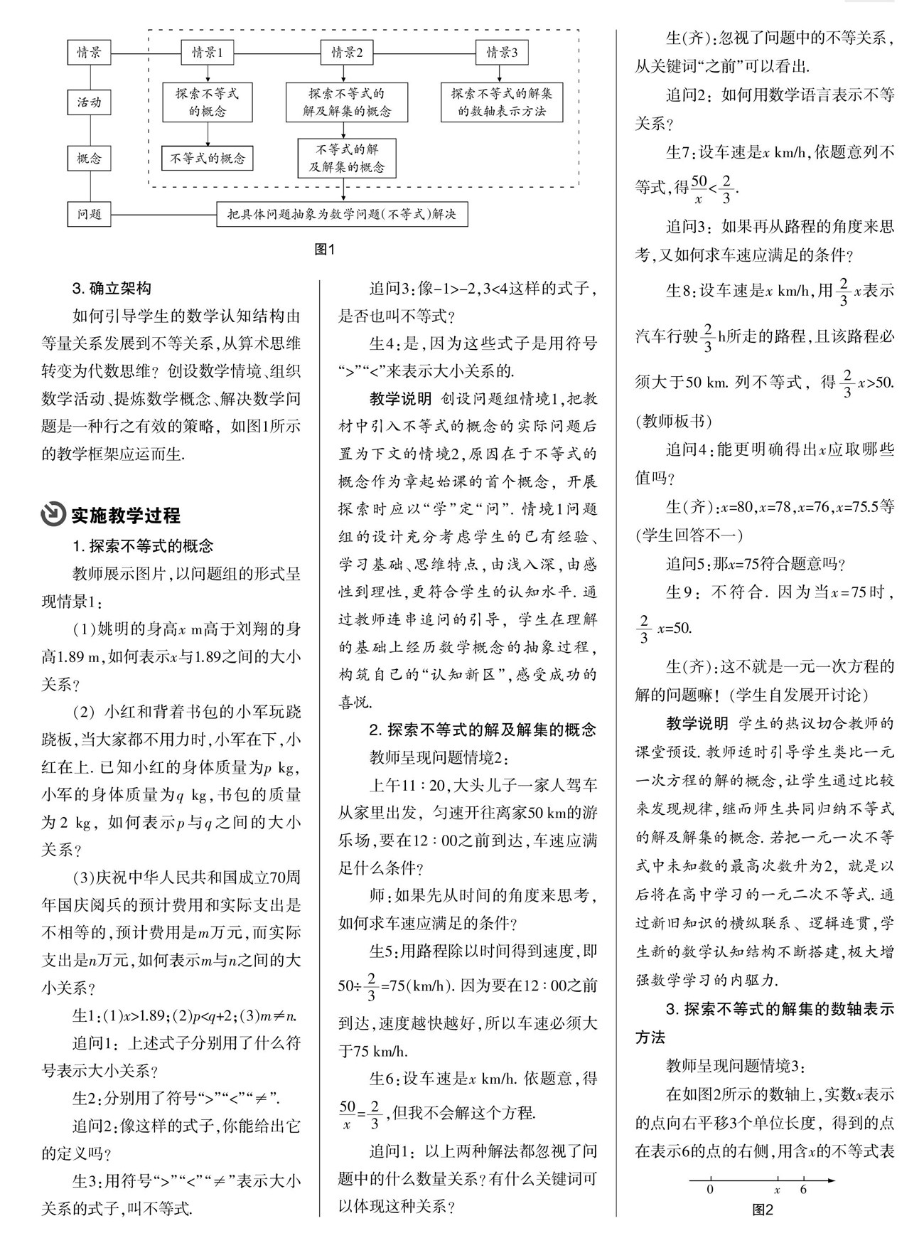 [摘要]从学生的数学现实出发,设计章起始课教学的情境、问题、活动,引导学生类比思考与探索,帮助学生在不等式及其解集知识学习中科学建构、适切运用、有效优化数学认知结构,提升数学思维,发展数学能力.