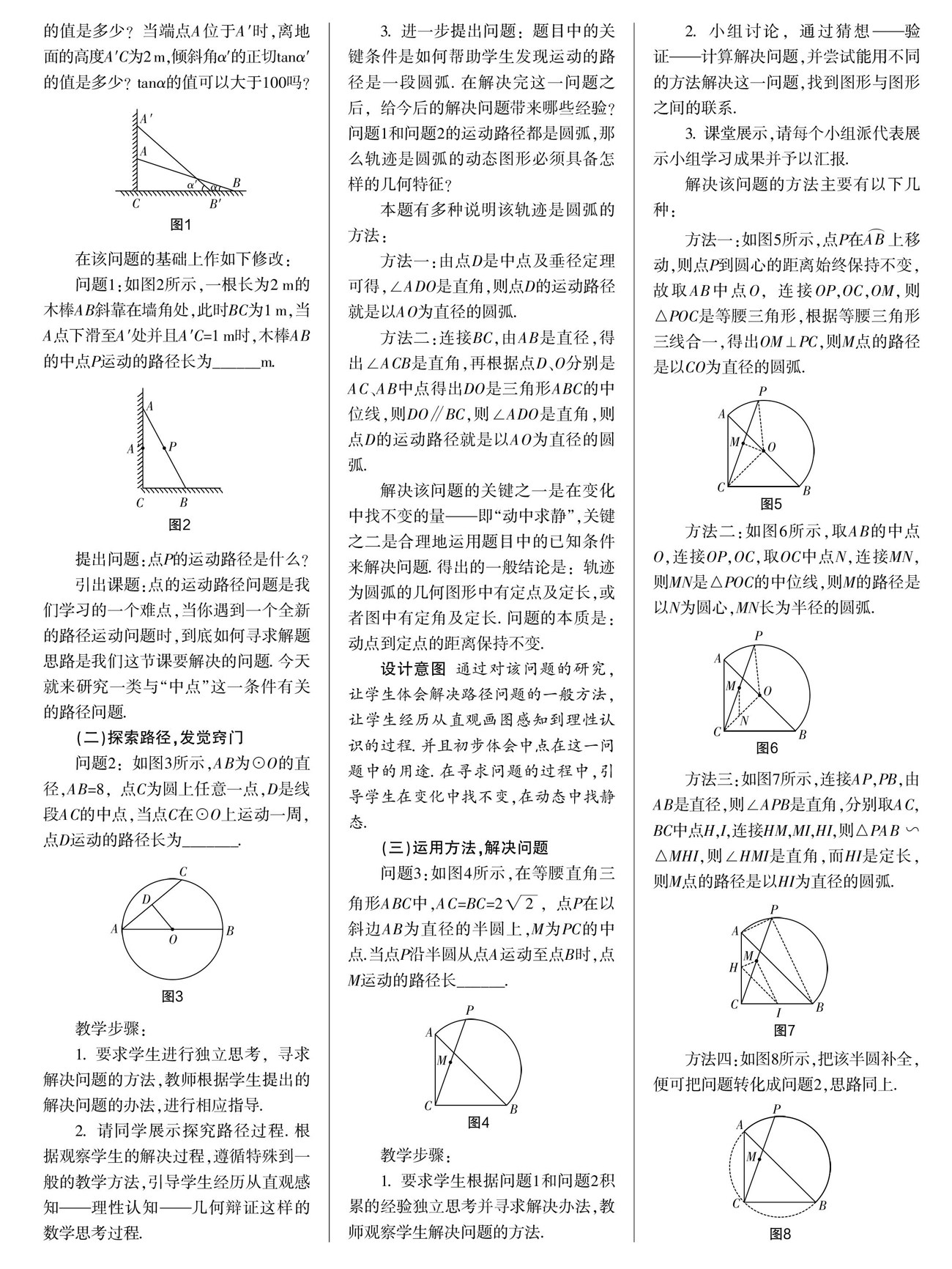 [摘要]义务教育拓展型课程的开发注重的是方法的拓展和思维的拓展,目的是通过对拓展问题的解决,感悟数学解题策略.教学设计注重多样性,引导和鼓励学生进行独立思考、合作探究,并运用所学知识分析和解决实际问题.本课堂教学以几何中点有关的轨迹问题的探究,培养学生几何直观,从而提升学生的数学思维和数学素养.