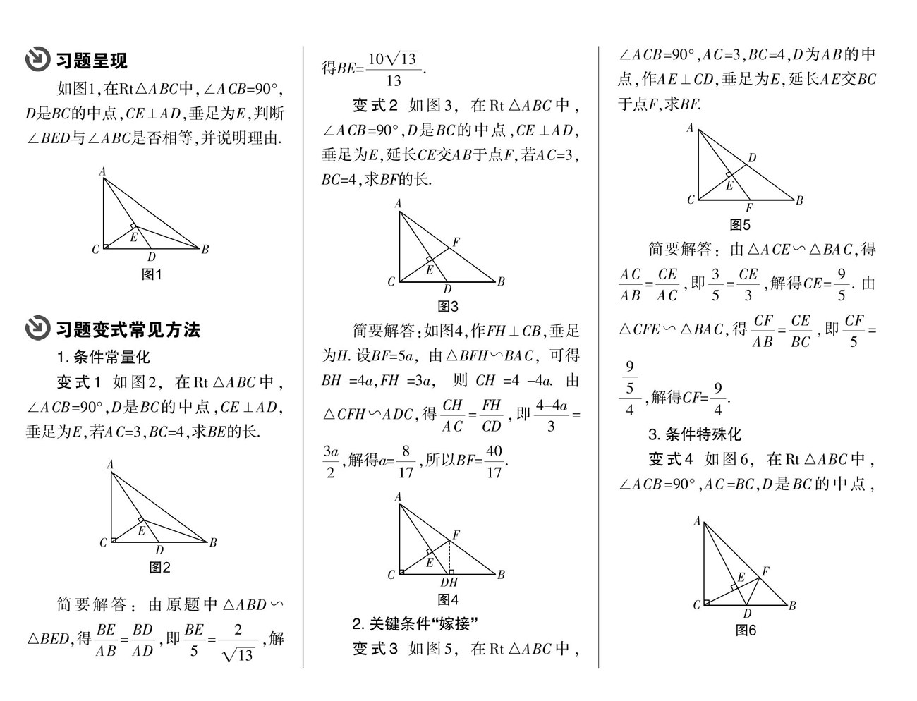 如图1,在Rt△ABC中,∠ACB=90°,D是BC的中点,CE⊥AD,垂足为E,判断∠BED与∠ABC是否相等,并说明(剩余1414字)