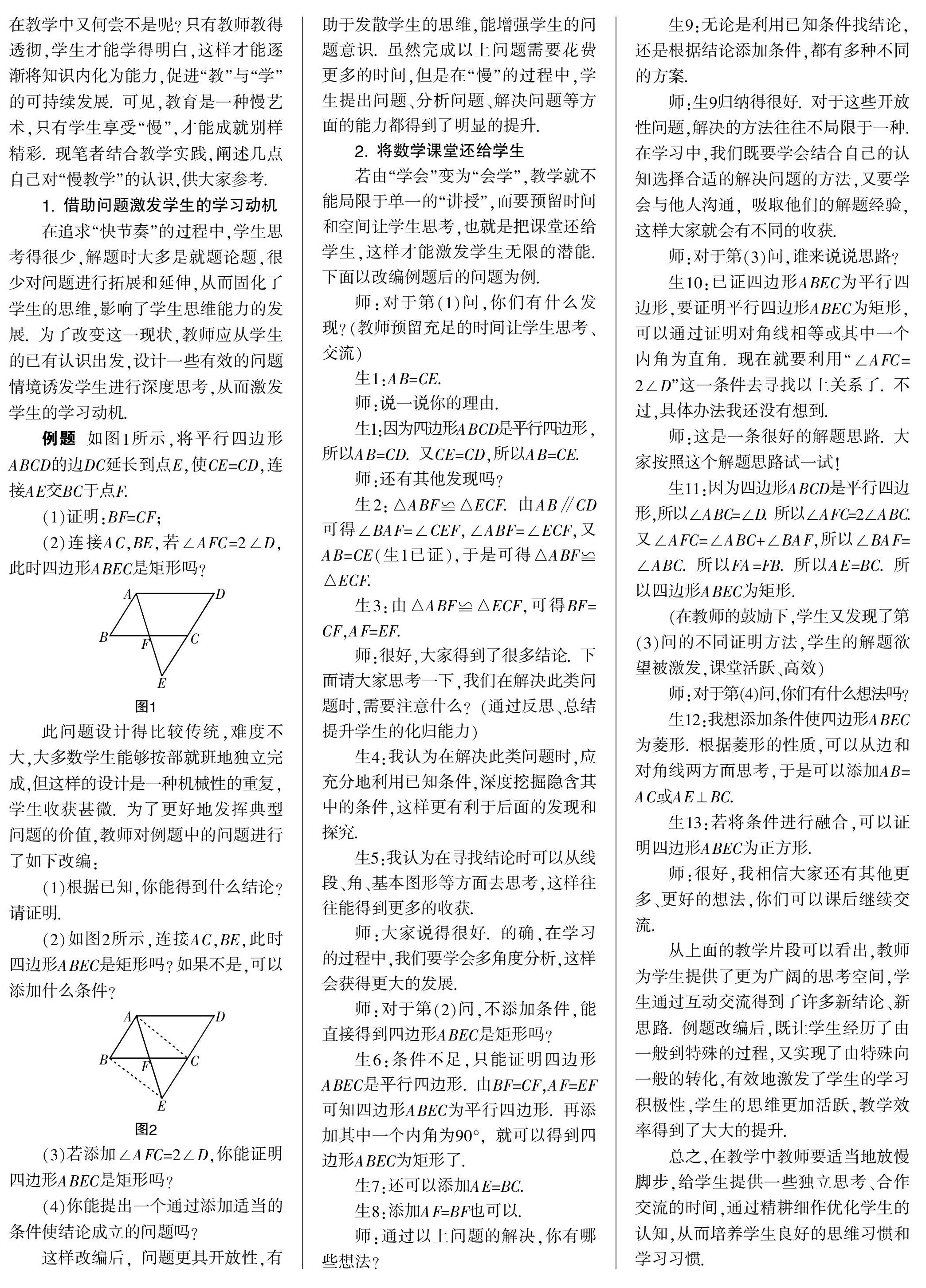 讲究“慢教学” 落实高效率
