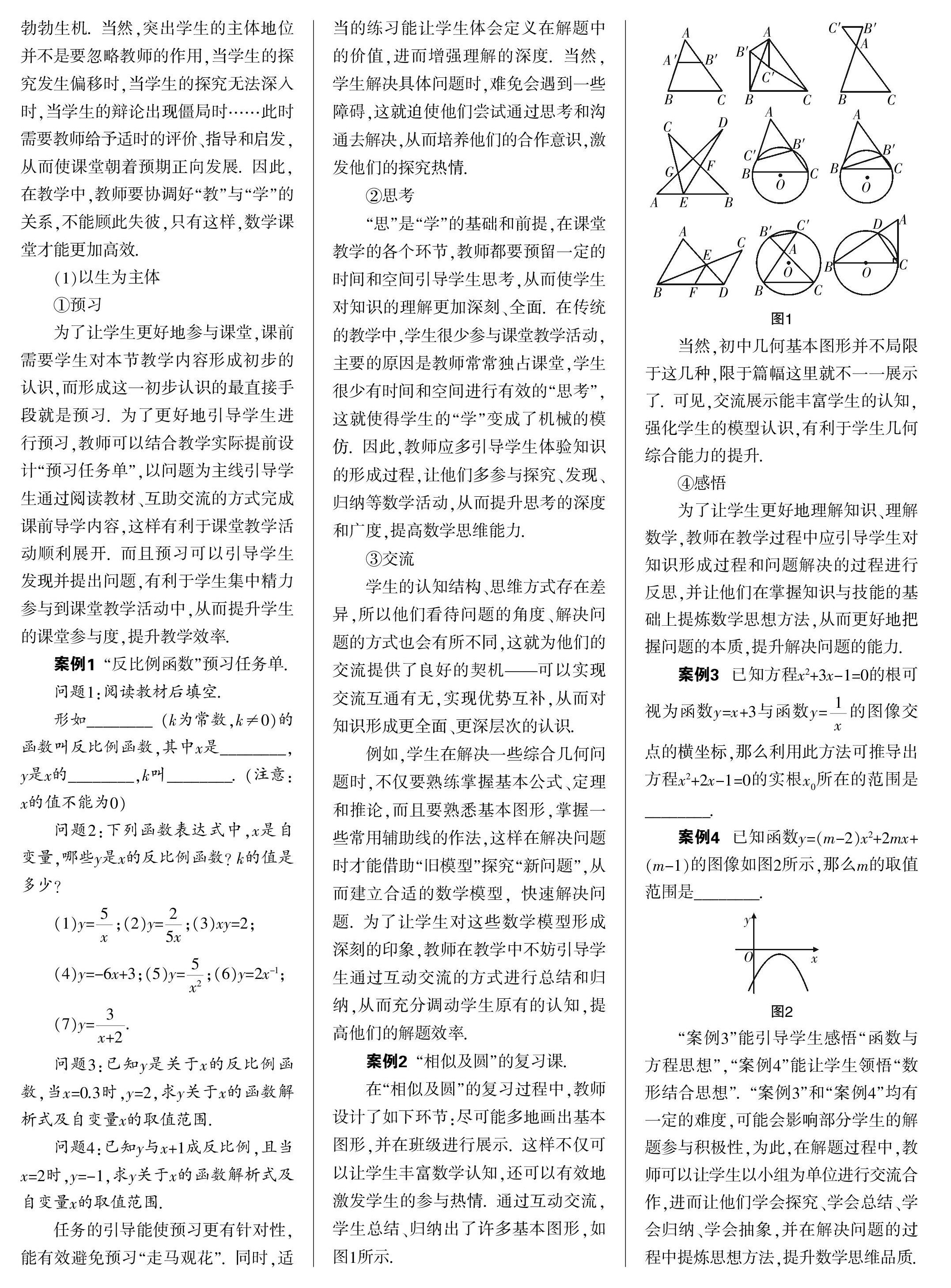 [摘 要] 在“学为中心”教学理念的指引下,教师要把课堂交给学生,协调好“主体”和“主导”的关系,引导学生通过自主学习、合作探究、师生互动等方式更好地参与和体验数学课堂,从而营造一个充满活力的数学课堂.