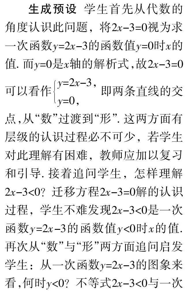 [摘 要] 好的数学教学应当教学生思考,教数学思想方法、教数学结构体系以及富有逻辑地呈现结构体系的生长过程. 文章以“一元一次不等式与一次函数”的教学为例,尝试渗透思想、注重逻辑与整体联系,以促进学生思维发展、素养形成.