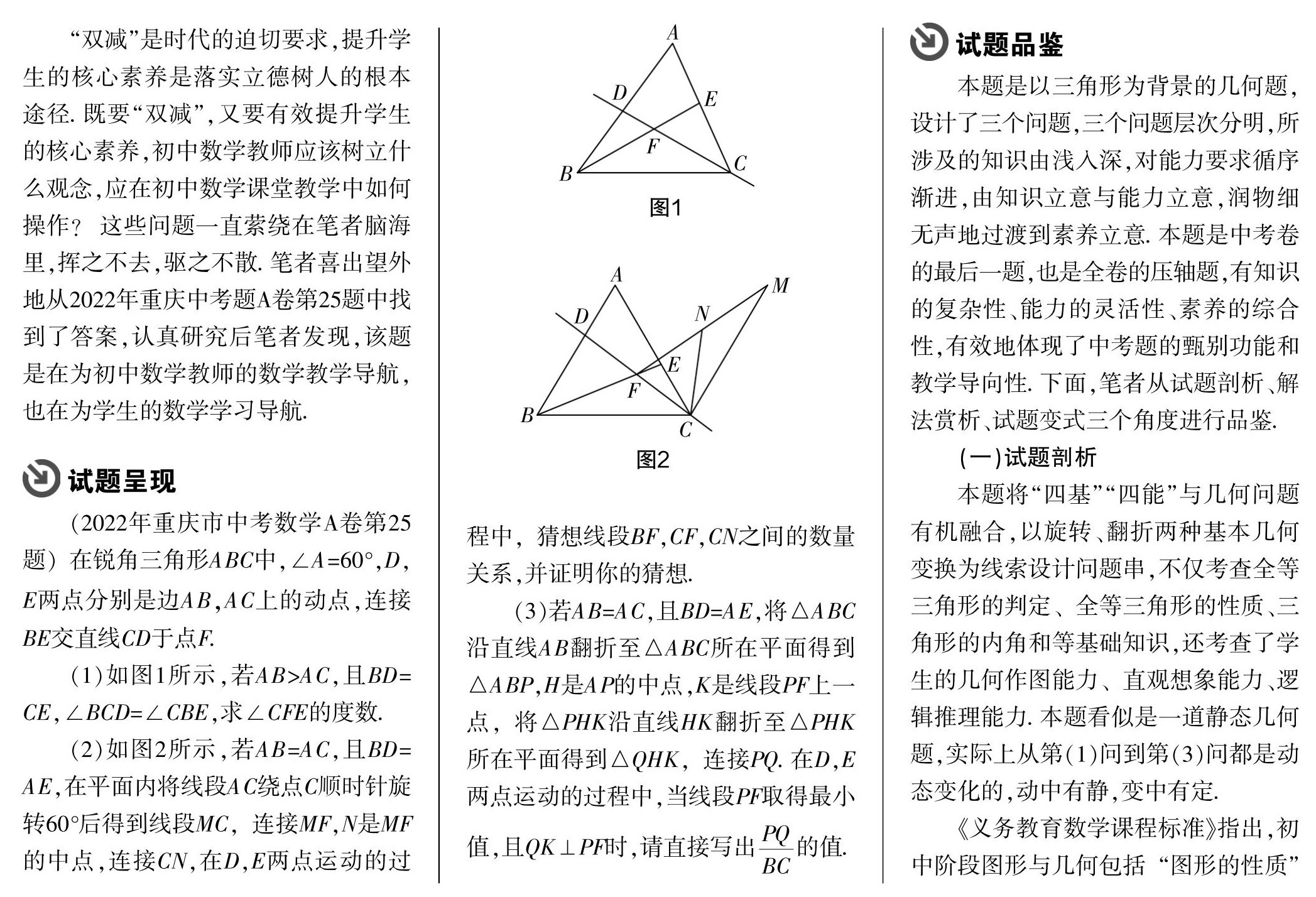 [摘 要] 初中平面几何的基础知识、核心知识可以用“模型”来表达,“模型”简洁、直观,能突出核心[1]. 如果学生能准确理解“模型”,善于运用“模型”,就能有效地避免机械刷题,实现“双减”. 但一味地依赖“模型”,也会导致思维定式,核心素养缺失. 所以需要教师引导学生通过深刻理解、深层思(剩余5594字)