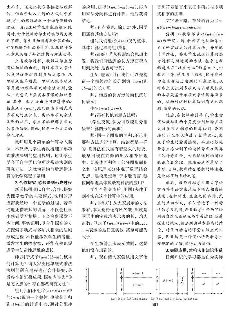 [摘 要] 为了追求法则教学的自然高效,文章以“多项式乘多项式”的法则教学为例,从“追根溯源,探寻法则的生长点”“合作探究,感知法则形成过程”“实际应用,建构法则知识体系”三方面展开教学与分析,并针对法则教学谈三点思考:关注导入方式,注重知识连贯性;渗透数学思想,多角度诠释法则;放慢探究(剩余5006字)