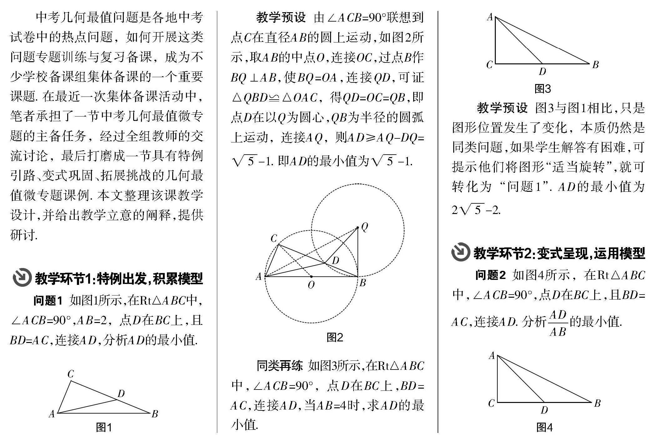[摘 要] 中考几何最值问题是各地热点考题,学校备课组在复习备考期间都会加强对这类问题的复习研究.如果能将一些同类的最值问题“集中”在一起,根据由易到难、由特殊到一般的逻辑顺序展开教学,并注重预设“启发式问题(剩余2116字)