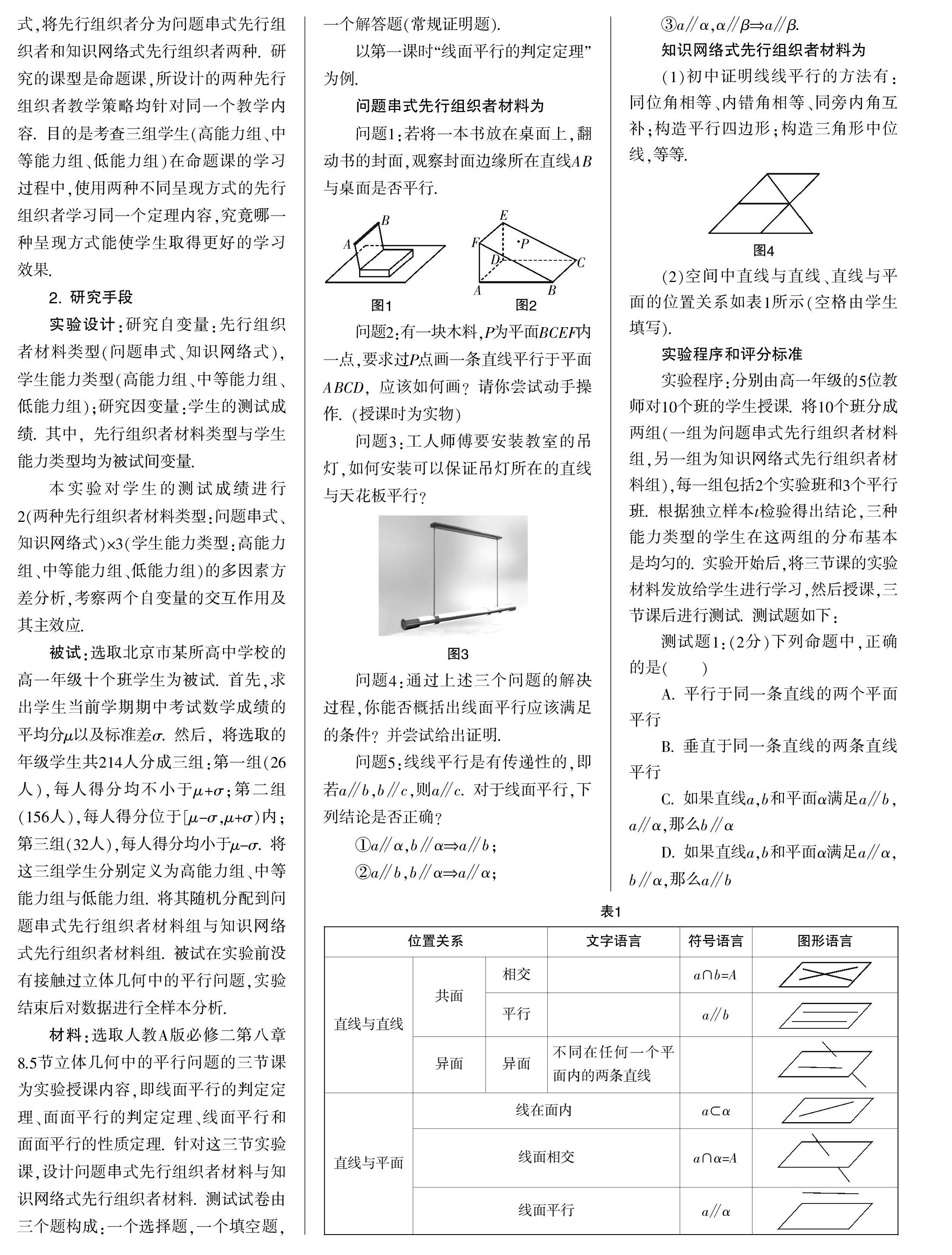 先行组织者呈现方式对高中数学立体几何平行问题学习效果的影响研究