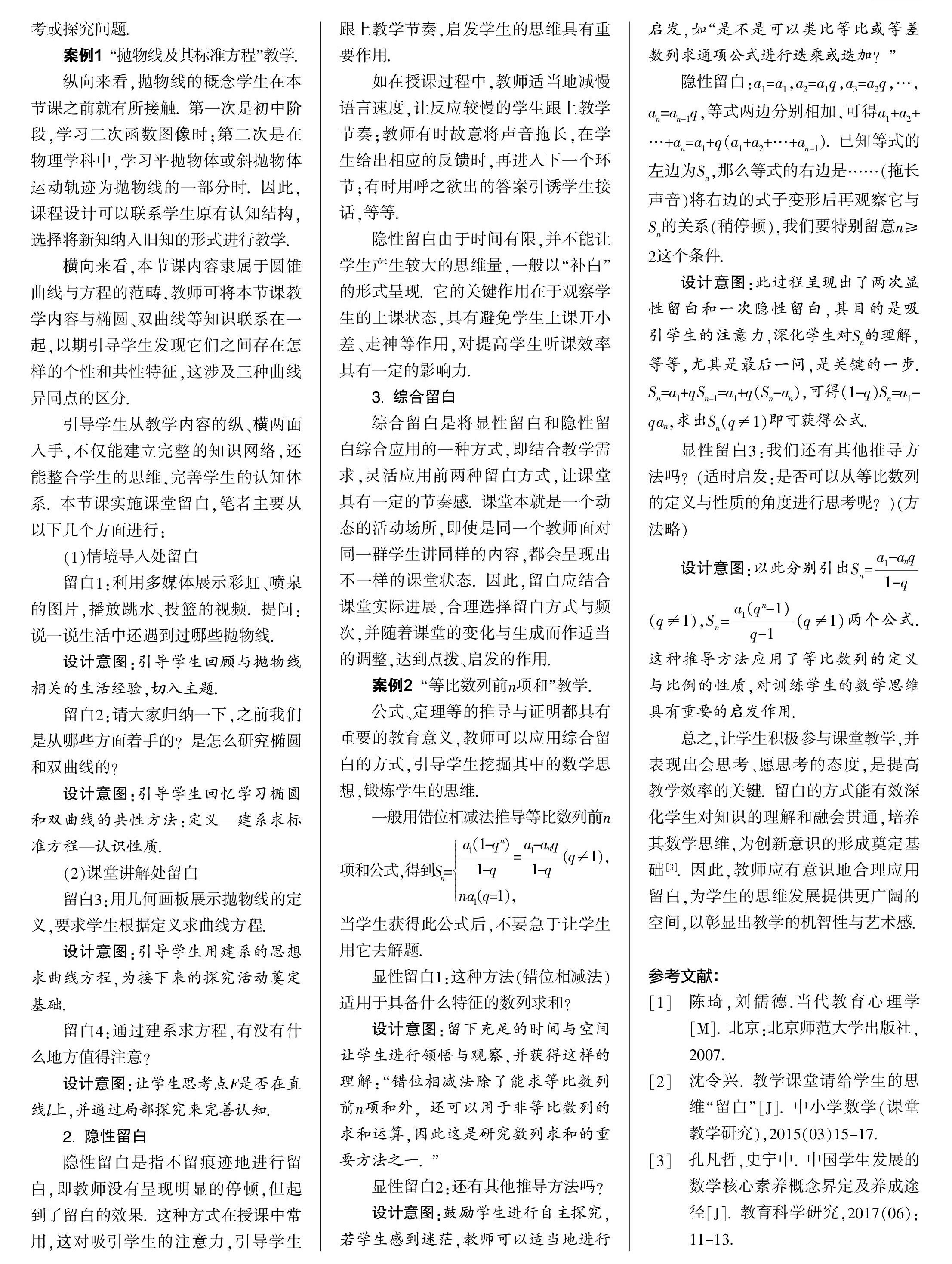 浅析数学课堂留白的原则与形式