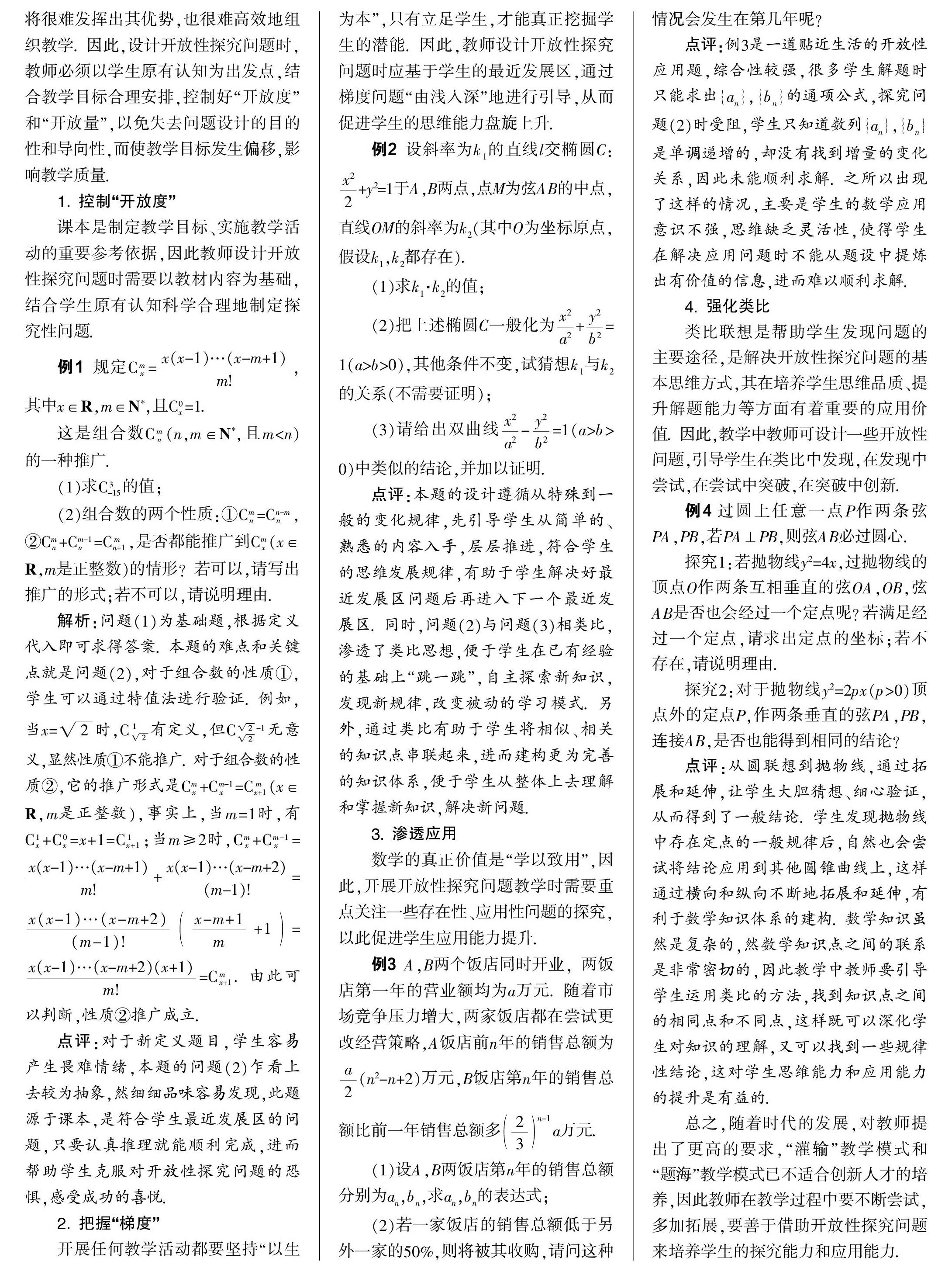 [关键词] 开放性问题;思维;创新;数学品质