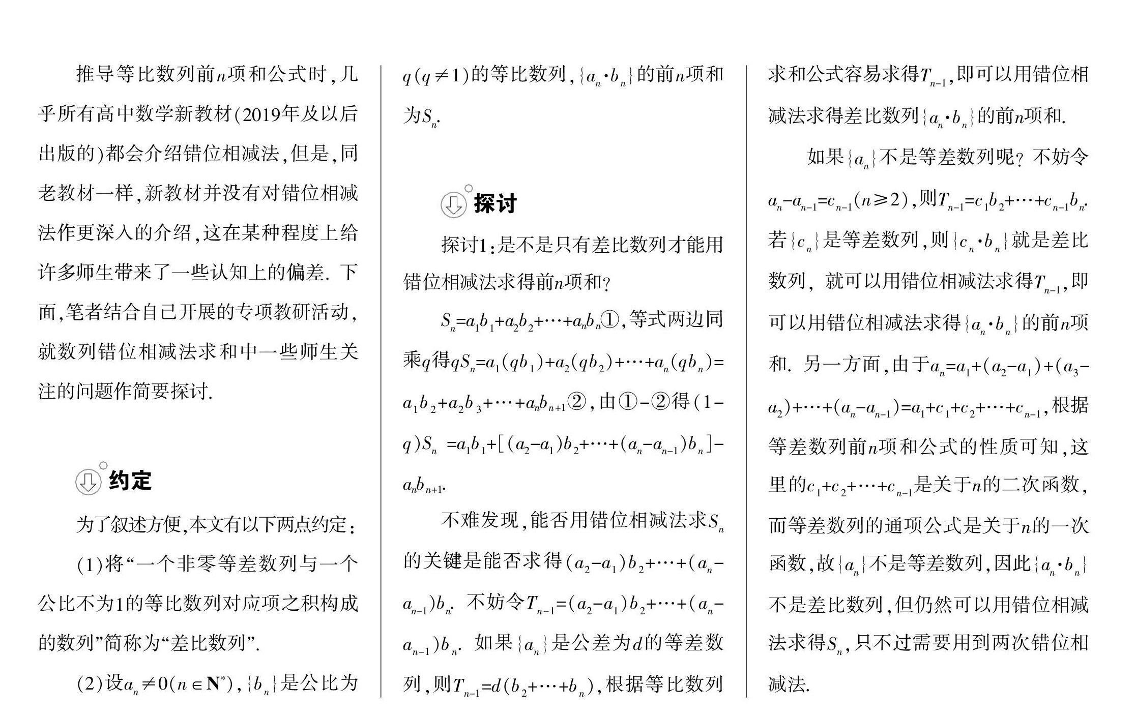 对数列错位相减法求和的探讨