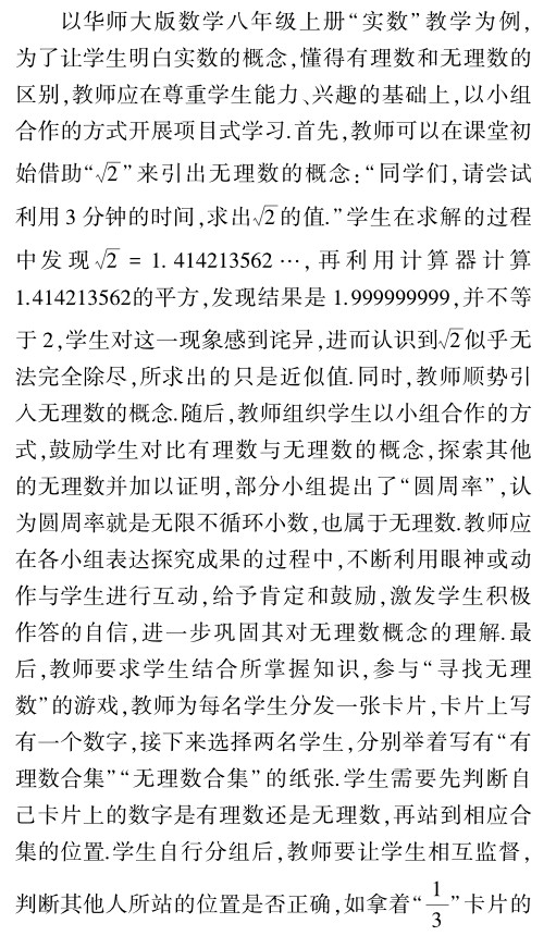 初中数学教学中实施项目式学习的策略研究