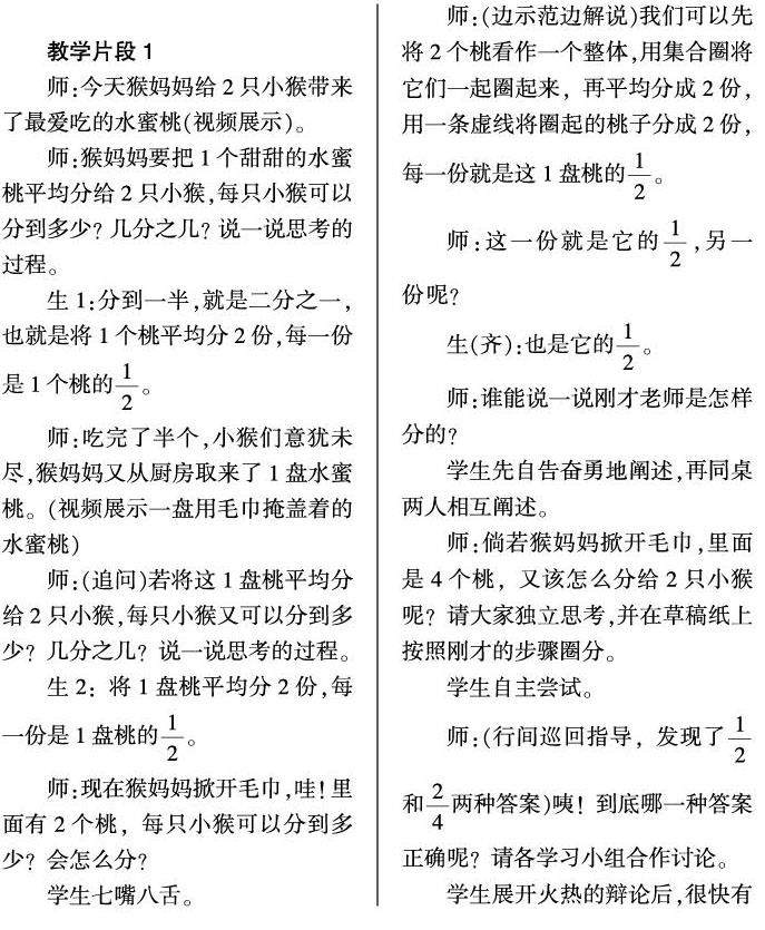 [摘 要] 在概念教学中,“精致”的实质是:通过可操作过程,对概念的内涵与外延进行深度剖析。以“认识几分之一”的教学为例,基于对小学生心理的多重考虑,运用问题情境、变式情境、反例比较、动手操作等策略,让概念教学走向“精致”。