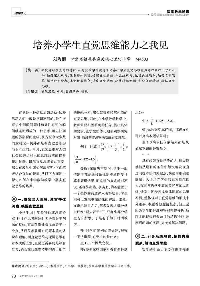 培养小学生直觉思维能力之我见