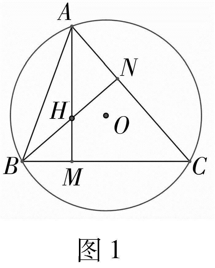 当ΔABC为钝角三角形时,不妨设角A为钝角,如图2所示,易知AH=2Rcos(π-A)=-2RcosA,BH=2RcosB,CH=2RcosC.