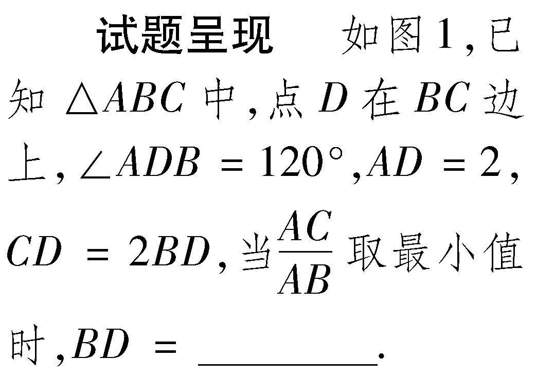 在解决了问题后,由于BD与CD虽然有二倍的关系,但都是变动的,是否有办法把问题转化为更简洁的单变量问题,于是作转化:如图2,过B作AC