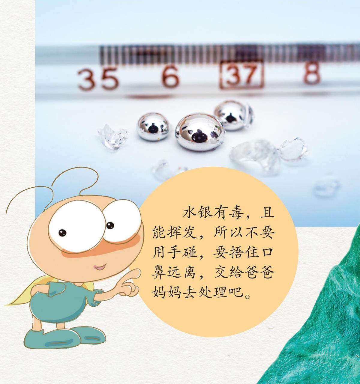 发烧时,妈妈是不是经常用水银温度计为你测体温?如果水银温度计不小心掉在地面上摔碎了,你是不是看到了一个一个的小水银球?