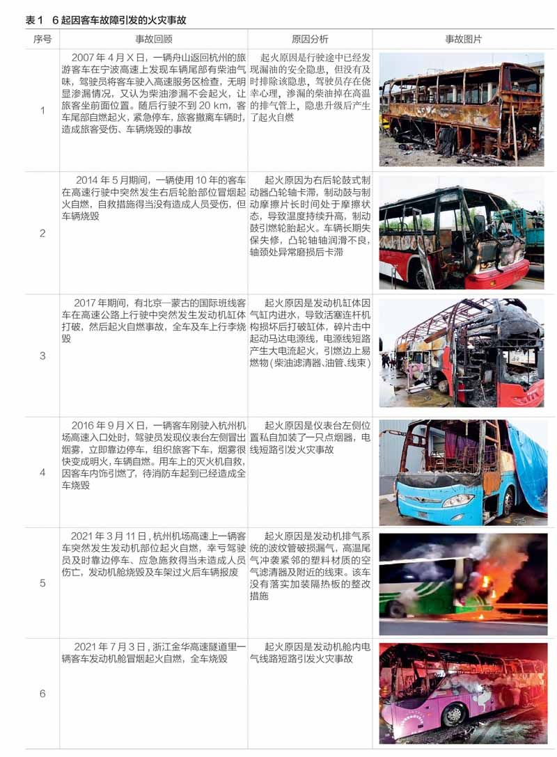 引发汽车火灾事故,必须具备火源、燃料和氧气3个条件。普通客车燃料的汽、柴油或LNG是易燃物,客车上的橡胶轮胎、电线、皮带和车内的座椅、内饰件、针织面料、塑料制件也是易燃物,车厢地板、机油、齿轮油、液压油等也都能燃烧。所以,客车一旦发生火灾,火势凶猛,很容易导致全车烧毁甚至人员伤亡的重大事故。回顾触目惊心的客车火灾事故记忆犹新,事故原因有人为纵火、易燃易爆物品、事故碰撞引发、外来火源、车辆本身故障引发等。(剩余2019字)