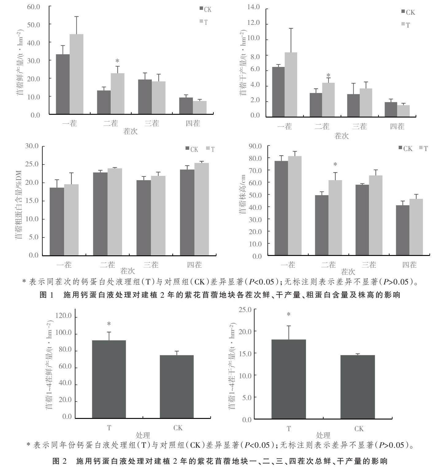 钙蛋白液对紫花苜蓿产量和粗蛋白含量的影响