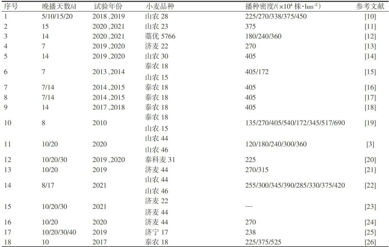 山东省冬小麦晚播对产量及相关构成因素的影响分析