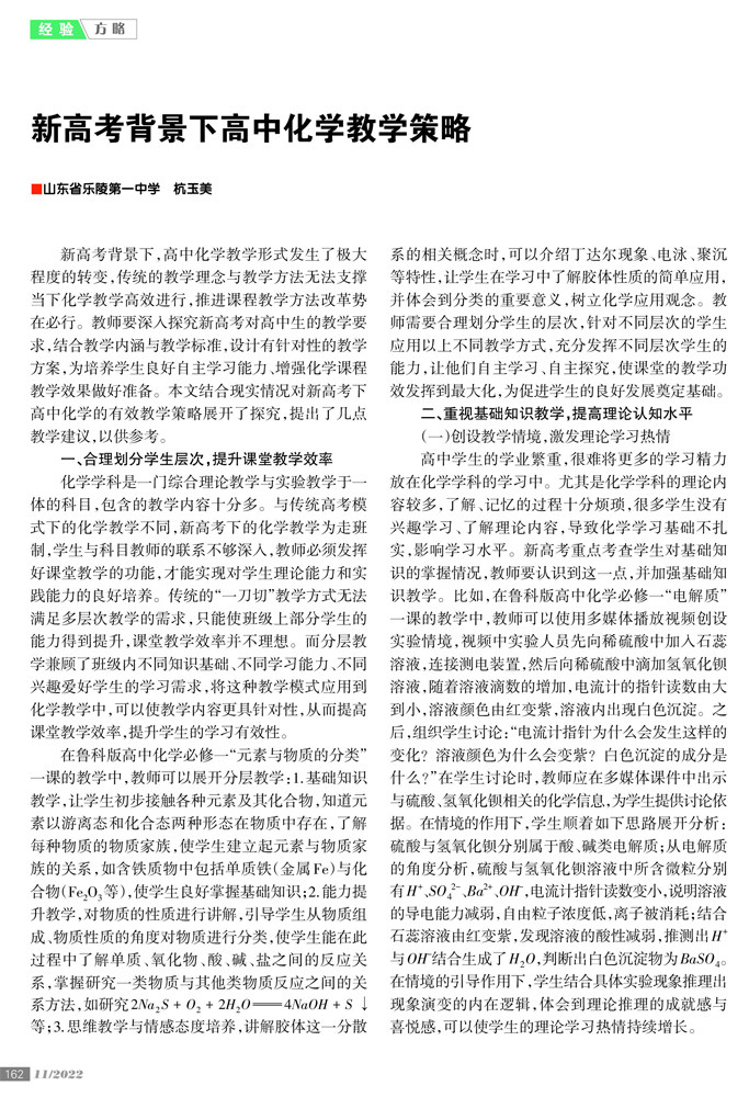 新高考背景下高中化学教学策略