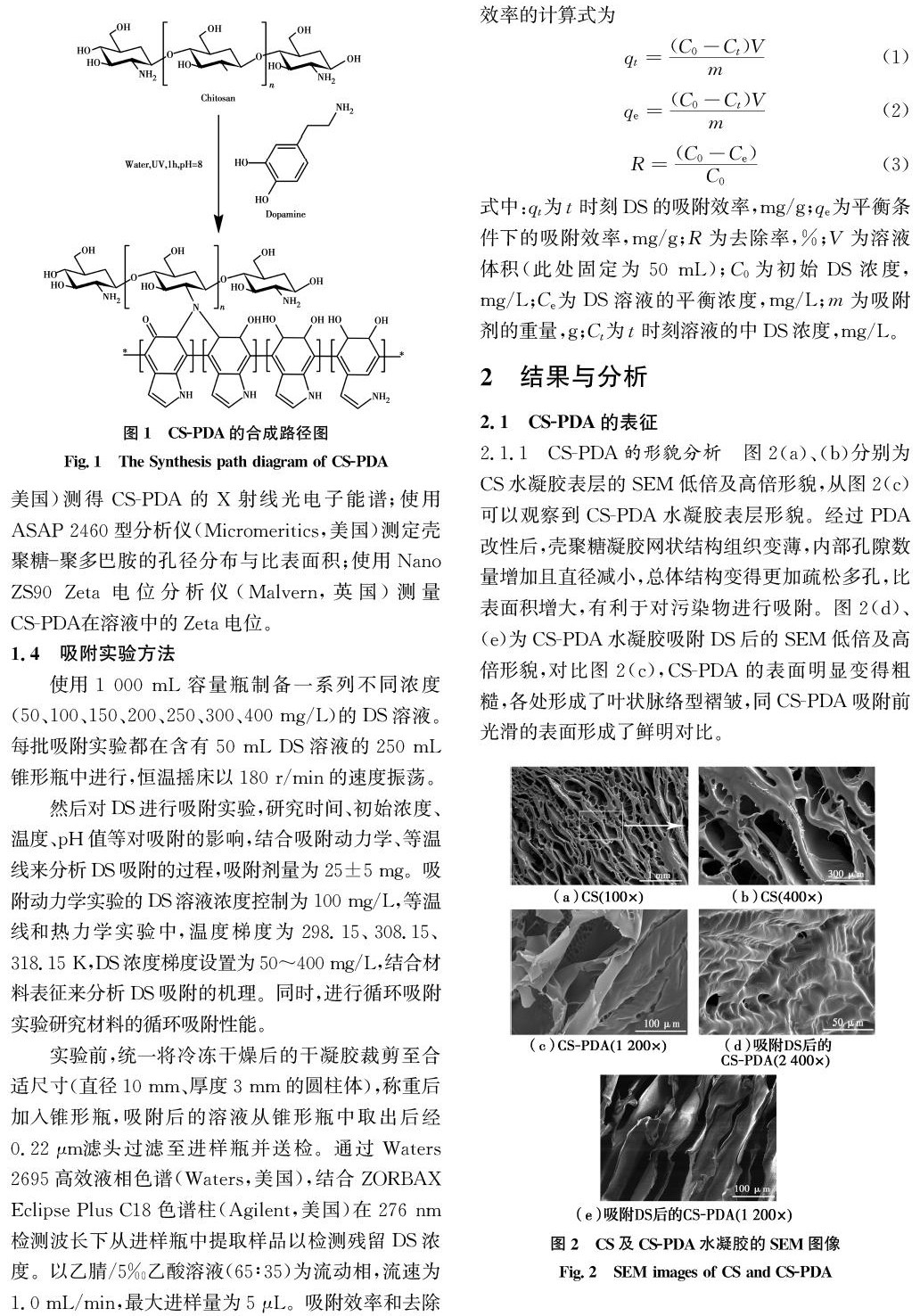 壳聚糖聚多巴胺改性水凝胶对双氯芬酸钠的吸附实验研究