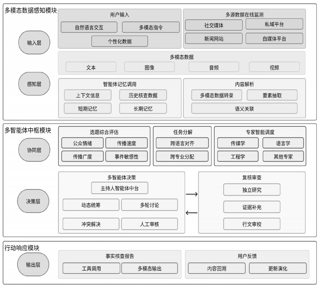 AbstractAgainst the backdrop of globalization marked bypolitical and economic turbulence,intensifying climate change,andaccelerated technologicalinnovation,the informationdisseminationecosystem has grown increasinglycomplex.The proliferationofdisinformationhasemergedasanurgentisue threateningsocialtability,publichealth,andpolitical security.Firstofall,This paper focuses onthe innovative applicationof large languagemodel-drivenagents in the fieldof fact-checking toaddressthechalenges of disinformation governance incomplex scenarios.Inthenextplace,it systematically examines thecurrent challenges faced in fact-checkingand demonstrates the potential and advantages of empowering fact-checking work through large language model-drivenmulti-agent.This research designed the theoreticalframeworkofthelarge language model-drivenfact-checking multi-agentsystem,outlinedapractical path forcollaborative work among large language model-driven fact-checking multi-agent through empirical research,and verified the superior performance of the system through comparative experiments.