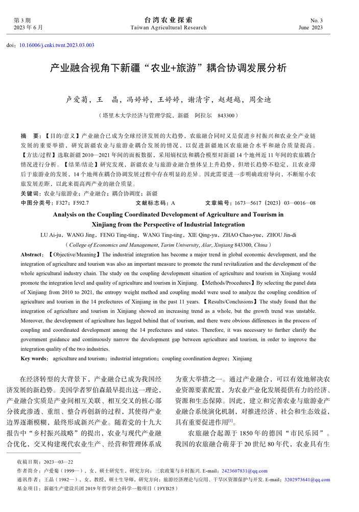 产业融合视角下新疆“农业+旅游”耦合协调发展分析