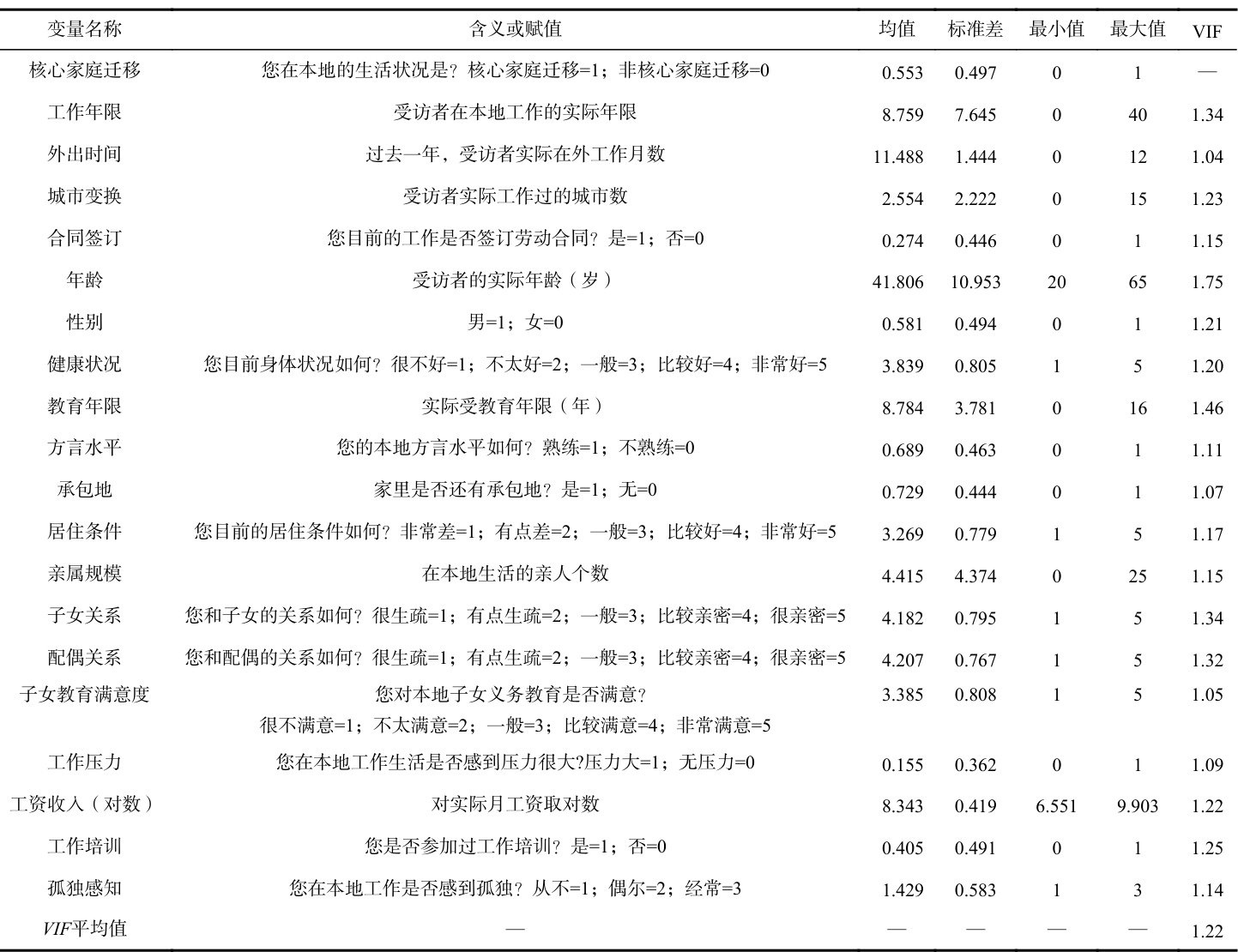 Key words: employment stability;migrant workers;Nuclear family migration;Loneliness perception