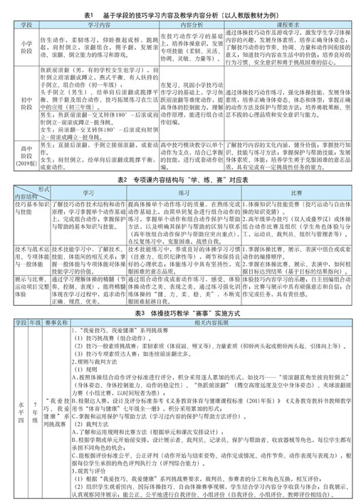 大单元整体设计是在“立德树人”的根本任务指引下,基于学科课程本质,根据体育项目内容特点,以单元整体设计为基础,通过科学、合理的设计,以单元的知识、技能为载体,通过“学、练、赛”的过程,培养学生的运动能力、健康行为、体育品德。根据“立德树人”的根本任务,学科育人的指导思想,在凸显体育与健康课程中体操项目内容教育价值的基础上,基于体操技巧内容特性,通过基于教学情境的“学、练、赛”,切实提高学生运动能力、健康行为、体育品德,在促进学生综合素养和全面发展的基础上,对体操技巧内容进行梳理,并针对水平四技巧内容特点,明确技巧初中单元整体的设计理念,为进一步完善“学、练、赛”教学方式奠定基础。(剩余1369字)