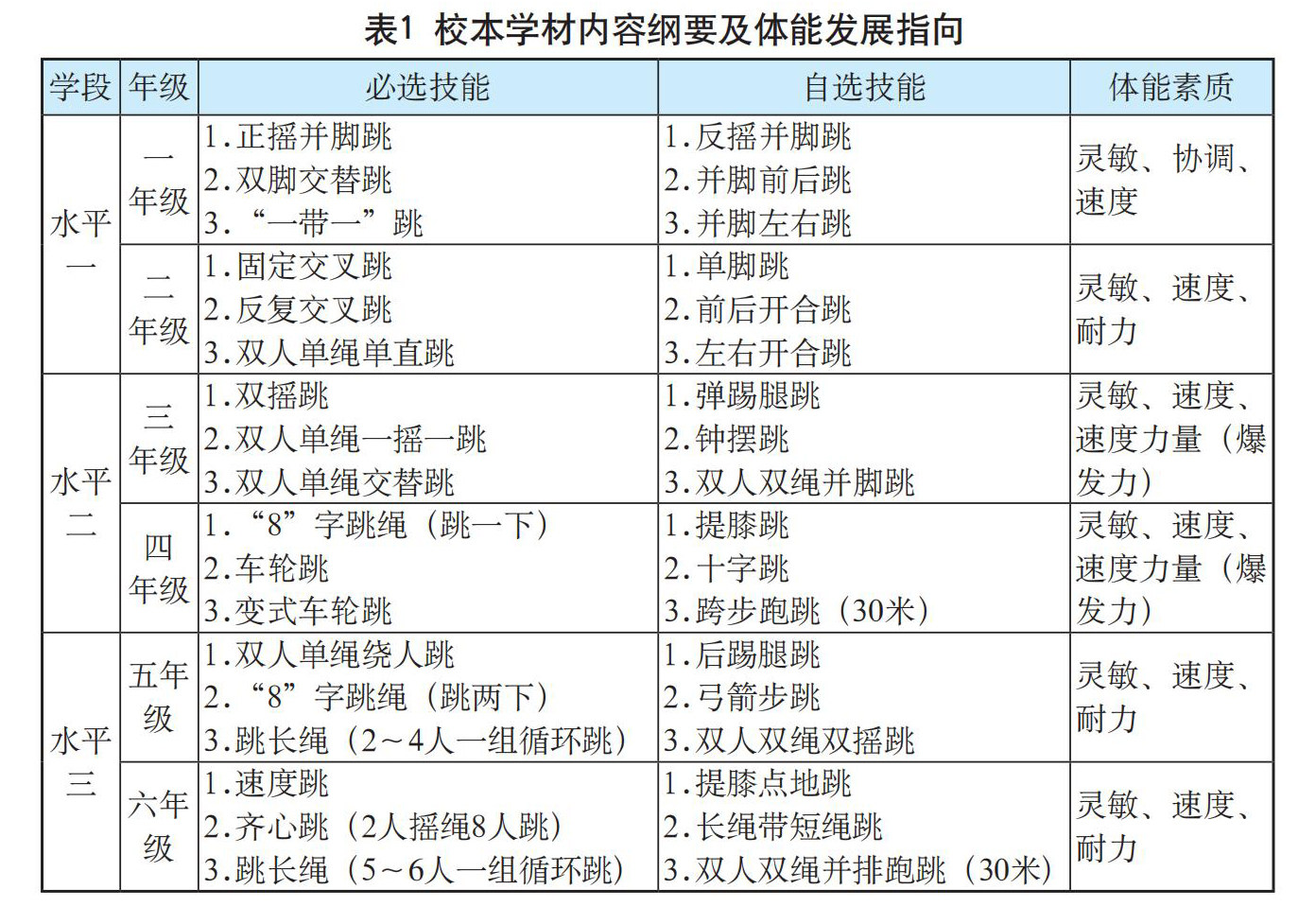关键词:技能;体能;跳绳;大课间;“学、练、赛”