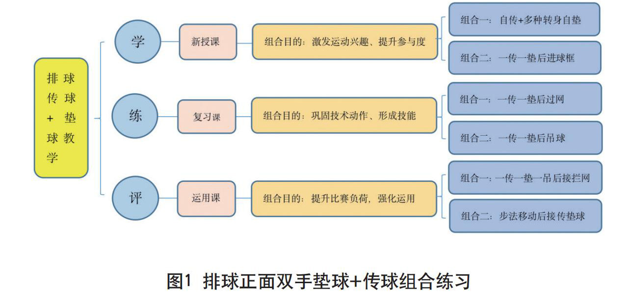 关键词:单一技术动作;组合练习;排球;垫球;传球