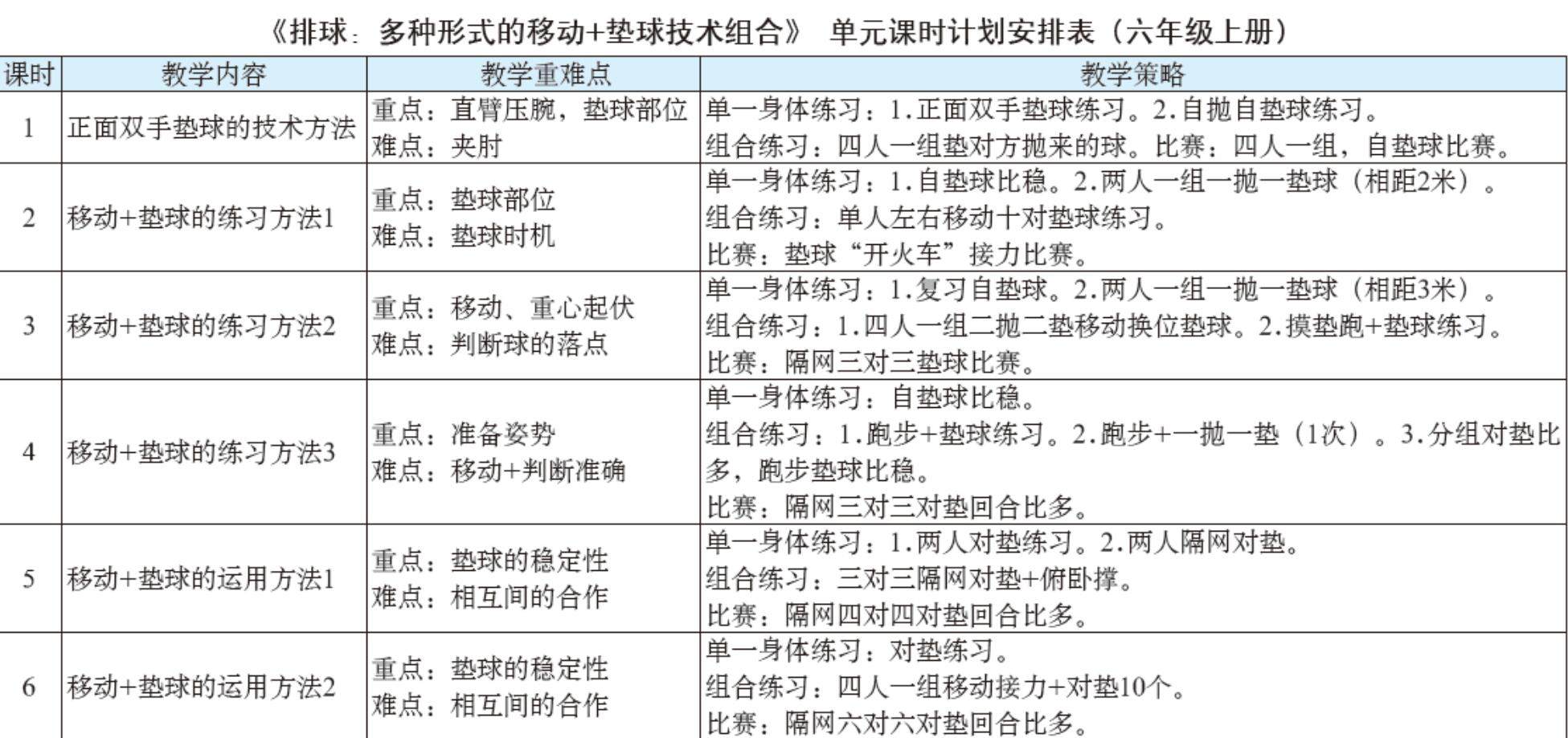基于“学、练、赛、评”的水平三排球(移动+垫球)教学设计