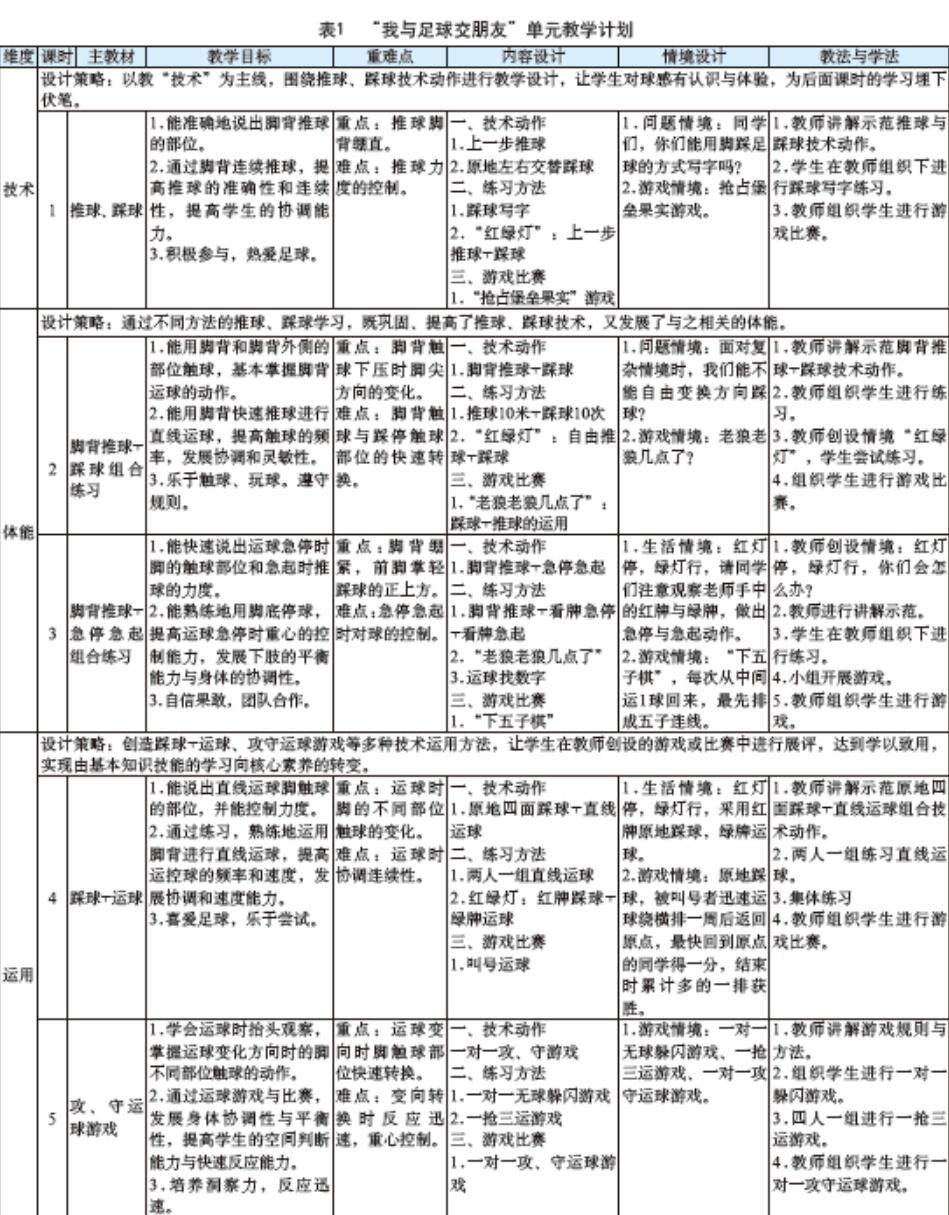 关键词:足球大单元教学;教学设计;实施策略