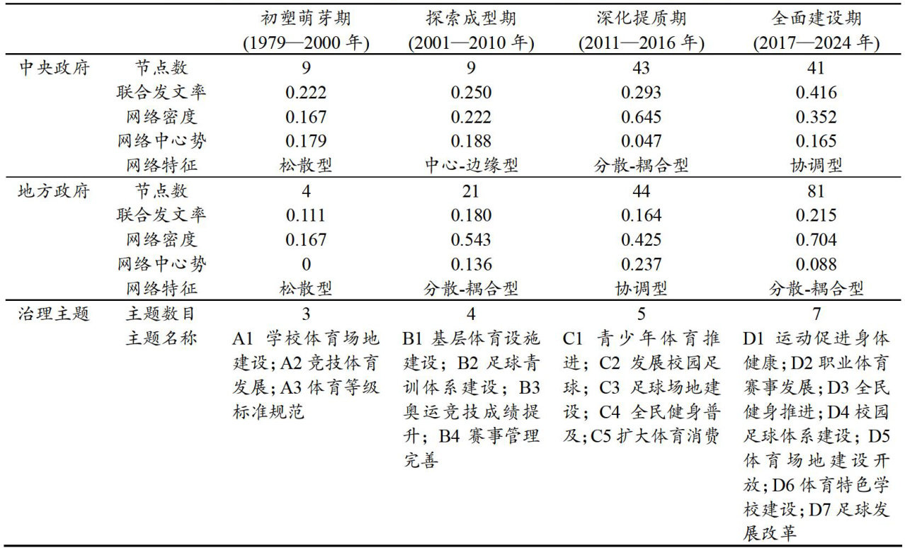 Abstract: The formulation and implementation of public policies in a scientific and rational manner serves as a crucial pathway for transforming institutional advantages into governance effctiveness.This study employs latent Dirichlet allocation (LDA)and social network analysis (SNA), grounded in the structural functionalism theory, to analyze the evolution of policyattention allocation and interdepartmental collaborative governance networks in 1574 policy documents on China's“The Big Three”from1979 to 2024.The results show that: (1)The allcation of policyatention is in a spiral development trend,and the focus of govermance has gradually shifted froma single competitive sports orientation to a coordinated development of multiple objectives,such as the development of fitness forall,thesupply of venues and facilities,the development of school football,the expansionof the tournament economy,and the reform of professional sports; (2)thedepartmental collaborative govermancenetwork has gradually evolved from loose to coordinated,and the governance mode has been transformed from single subject-led to multiple subject co-governance; (3) the policy govermance system has been gradually improved,but thereare still problemssuch as insufficient policy adaptability,unclear goal seting,imperfect synergistic mechanismand weak model maintenance,which makes it diffcult to form policy synergy in the synergistic governance process of China's “The Big Three”policies. Under the background of the new national system, China's “TheBig Three”policy making should further pinpoint the target of governance and enhance the adaptive function ofthe policy; optimizing the division of powers and responsibilitiesamong departments and promote the synergistic achievement of goals; strengthening the integration of the network and build a synergistic governance system; and regulating the mode of maintaining standards and cultivate common values.