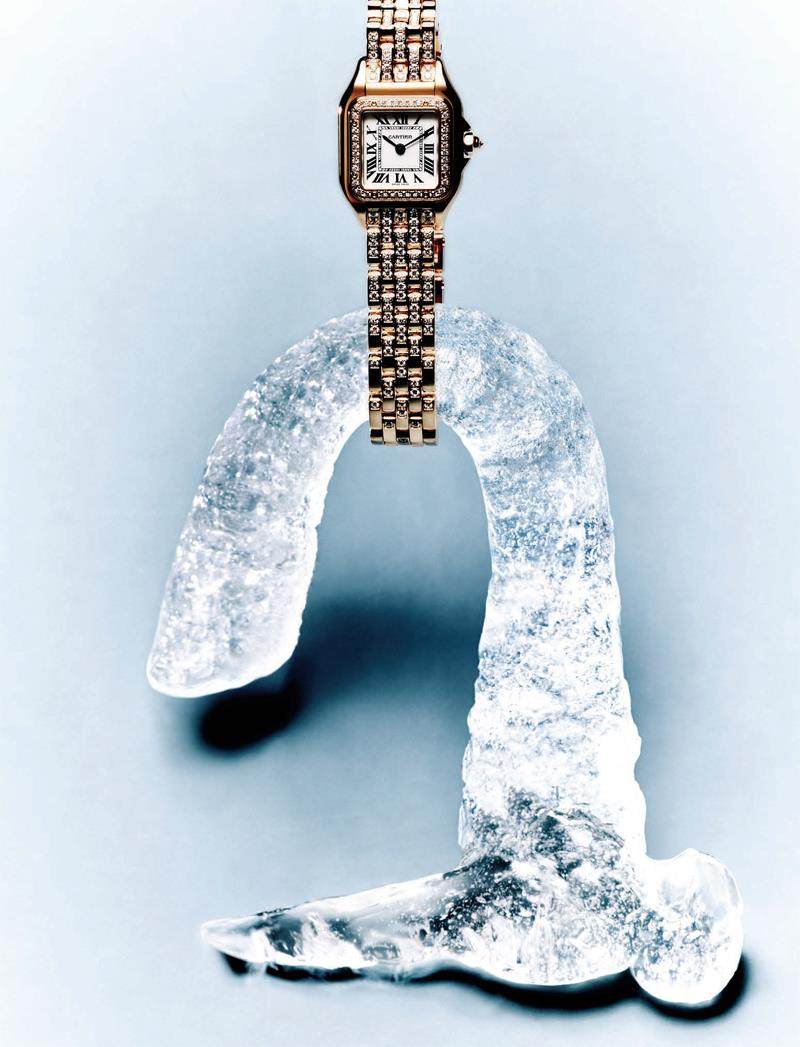 晶莹透亮的冰柱,定格了流水喷涌的瞬间,也折射出金属与宝石无与伦比的闪耀。这一刻,水流的轨迹与盘面的指针读数,仿佛都被按下了暂停键。Panthère de Cartier卡地亚猎豹系列腕表Cartier