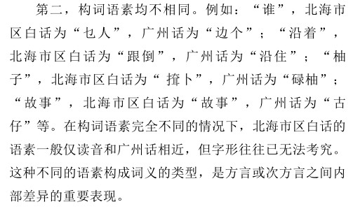 语言分为语音、词汇、语法三要素,其中以词汇与现实生活联系最为紧密。在北海市流行的五大方言中,北海市区白话和广州话最为相近,由于二者地理位置、生产环境及民俗文化等方面均有差异,因此两种粤方言的词汇具有共性,也分别有其独特性。通过对两者构词的比较研究,可以反映出词汇规律及其文化现象,帮助笔者掌握粤语词汇的整体特征。(剩余5752字)