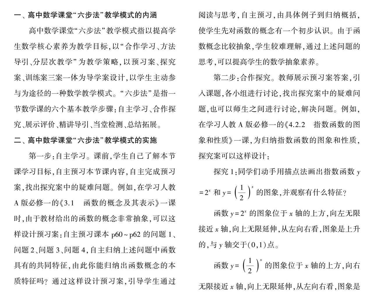 核心素养下的高中数学课堂“六步法”教学模式研究