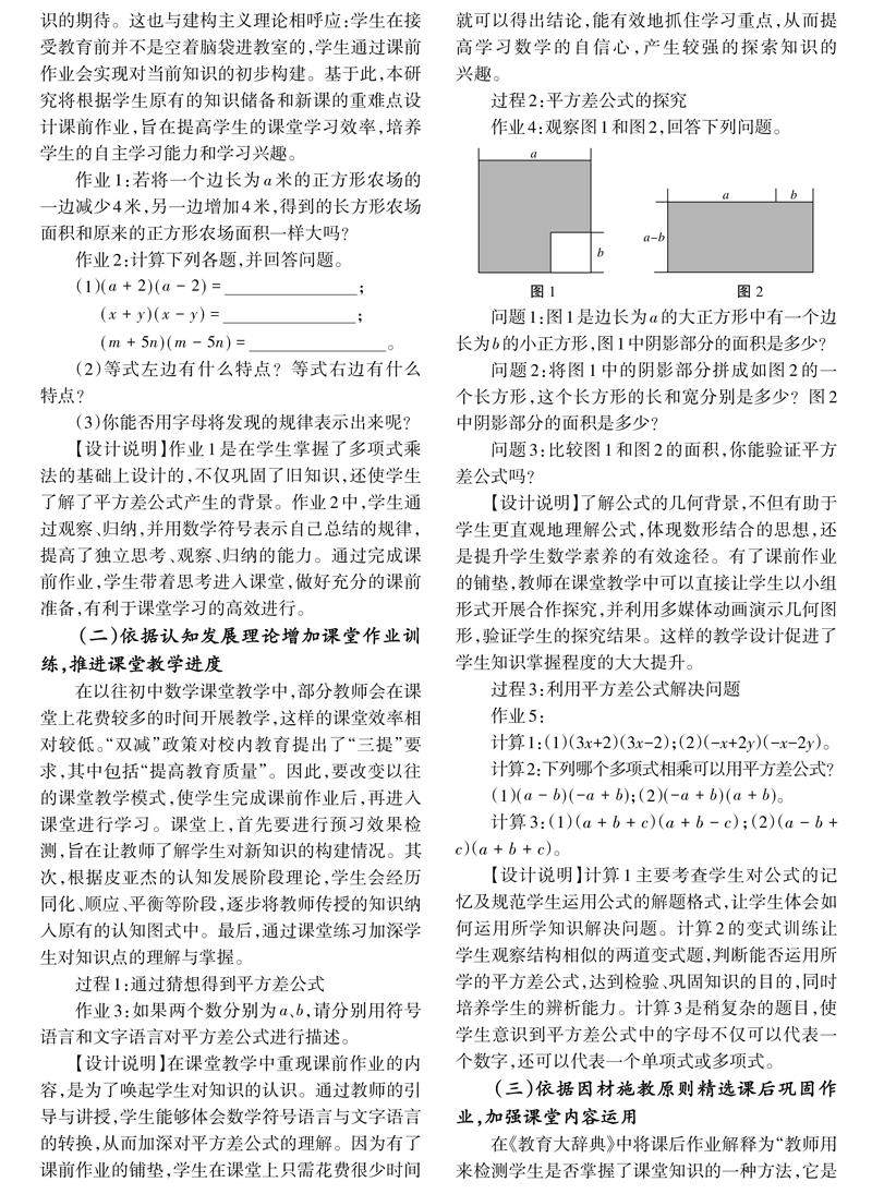 [关键词]“双减”;初中数学;作业设计;平方差公式