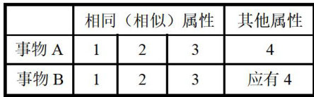 类比归纳、演绎是推理的几种基本形式,类比推理是根据两个对象在某些属性上相同或相似,通过比较而推断出它们在其他属性上也相同的推理过程。其基本结构如表1所示。