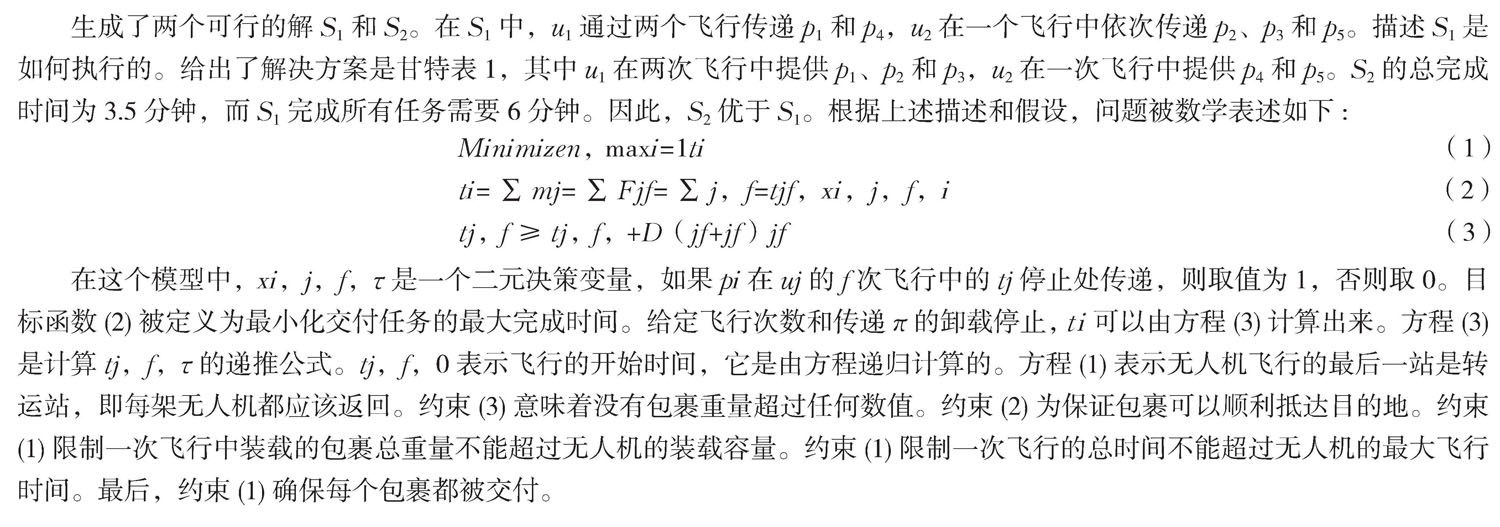 摘 要:文章研究了城市环境下异构物流无人机的调度问题,与传统的车辆路径问题不同的是,它引入了一些新的特性,例如负载能力、最大飞行时间和飞行速度等。作为一个变体,所考虑的调度问题被认为是一个非确定性多项式问题。首先,文章建立了具有异构设置的无人机调度问题模型。其次,提出了一种基于遗传算法的调度问题求解框架,该框架对编码/解码方法、初始种群生成方法和遗传操作进行了精细设计。(剩余5662字)