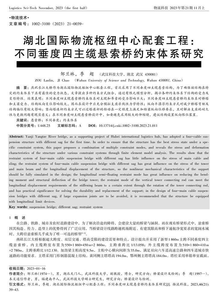 湖北国际物流枢纽中心配套工程:不同垂度四主缆悬索桥约束体系研究