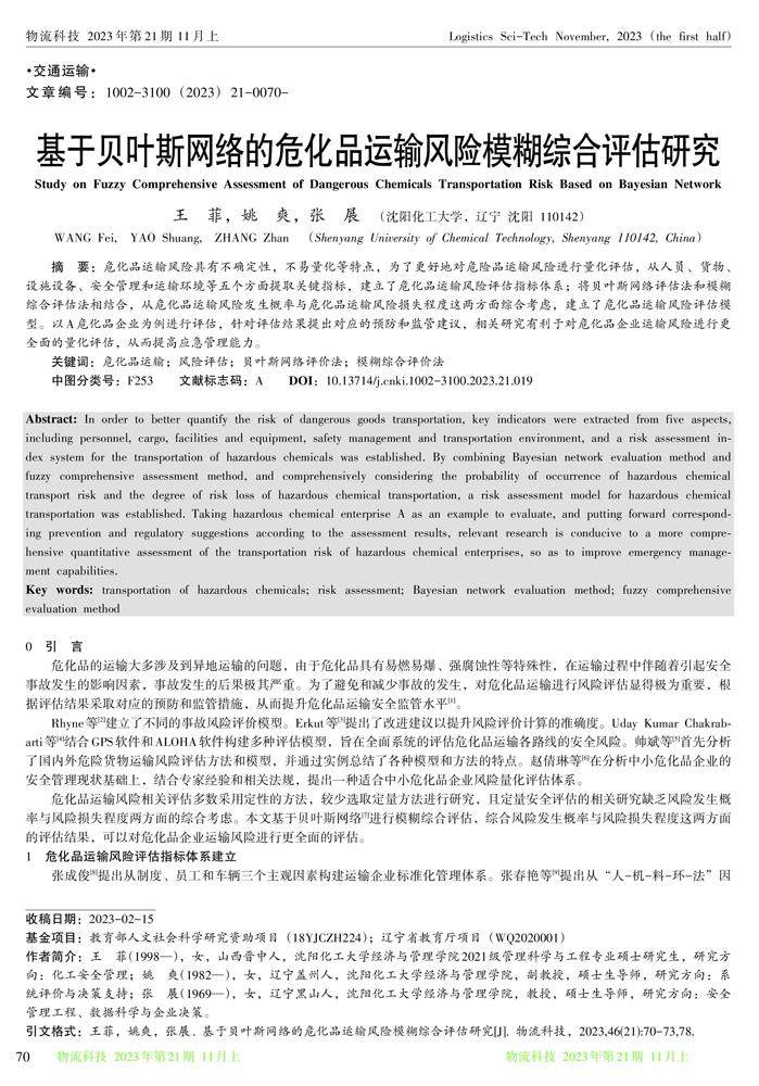 基于贝叶斯网络的危化品运输风险模糊综合评估研究