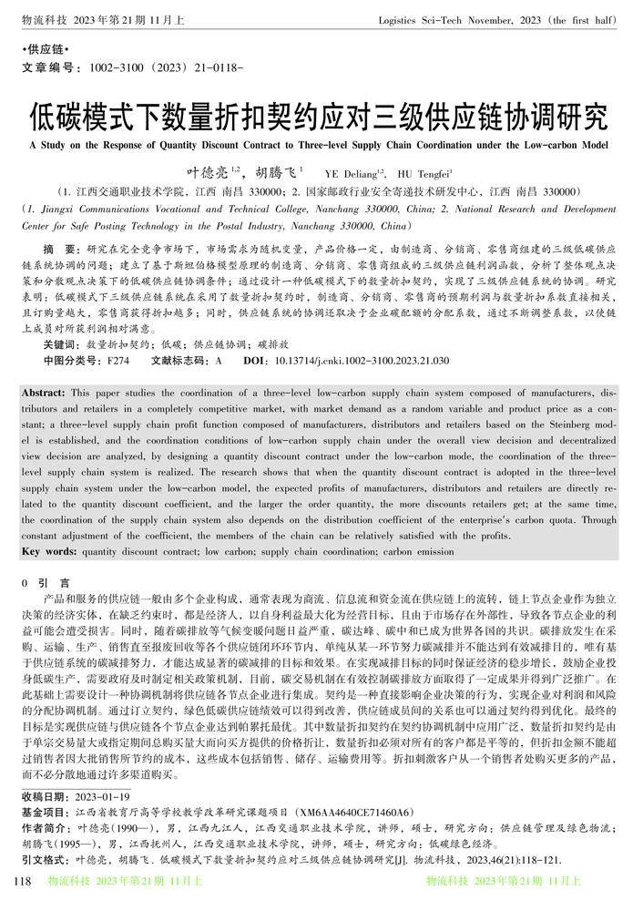低碳模式下数量折扣契约应对三级供应链协调研究