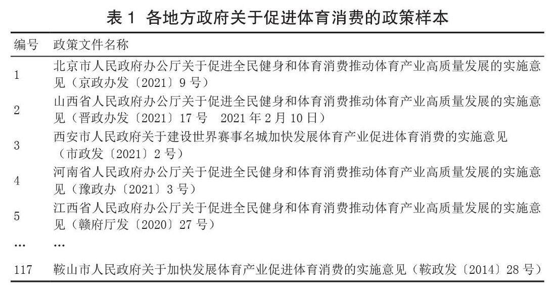 ——基于各地方政府关于促进体育消费的117份政策文件的量化分析